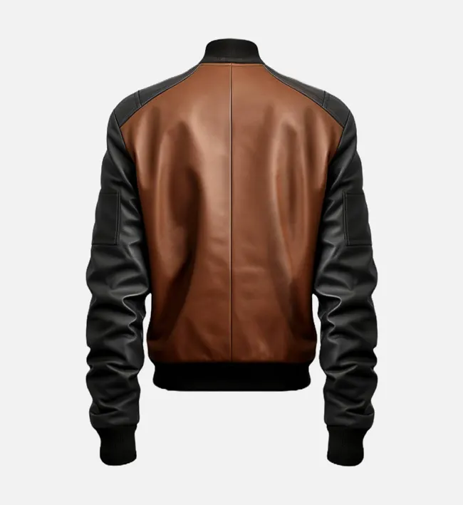 Upgrade your look with the Men’s Brown and Black Bomber Leather Jacket, featuring a bold two-tone design, soft lining, and ribbed detailing for a sleek mix of style and warmth.