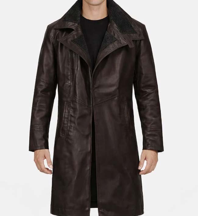 Command attention with the Men’s Dark Brown Leather Long Coat, crafted from rich genuine leather for a classic look that combines durability, warmth, and effortless masculine style.