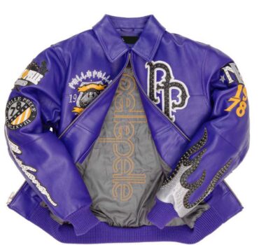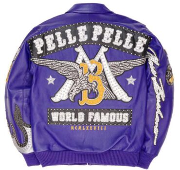Stand out in the Pelle Pelle Purple Studded Leather Jacket, featuring premium leather, detailed embroidery, metallic flame accents, and vintage-inspired graphics that redefine bold street fashion.