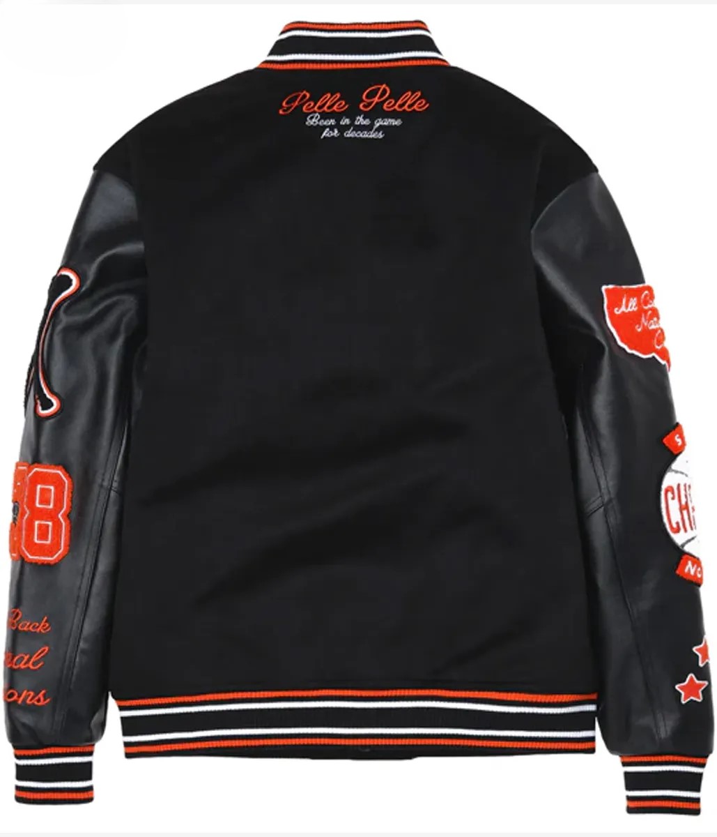 Pelle Pelle World Famous Black & Orange Varsity Jacket