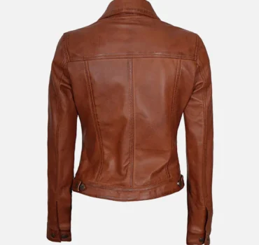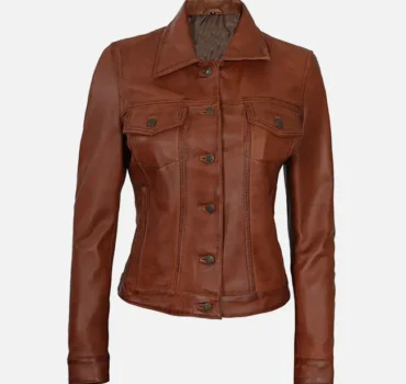 Women’s Cognac Brown Trucker Leather Jacket – Rich Tone, Effortless Style