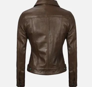 Women’s Dark Brown Leather Trucker Jacket – Classic Elegance, Modern Edge