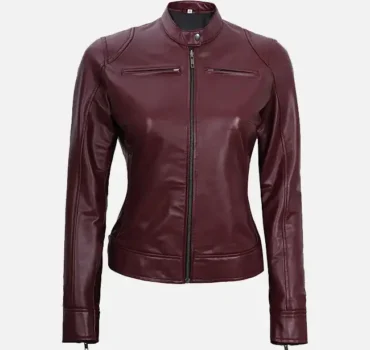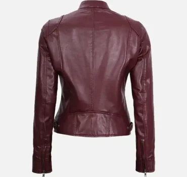 Women’s Maroon Leather Moto Jacket – Effortless Style with a Bold Edge