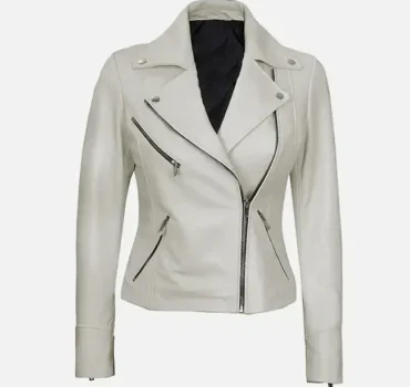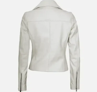 Add a touch of sophistication to your wardrobe with the Women’s Moto Style White Leather Jacket, featuring smooth leather, a chic moto design, and a tailored fit for timeless appeal.