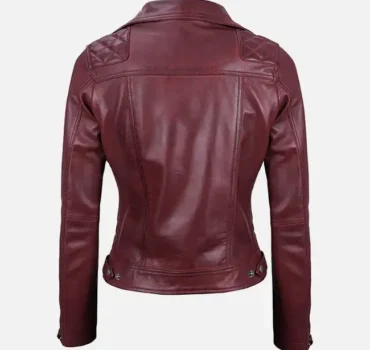 Women’s Quilted Motorcycle Maroon Leather Jacket – Stylish & Luxurious Ride Wear
