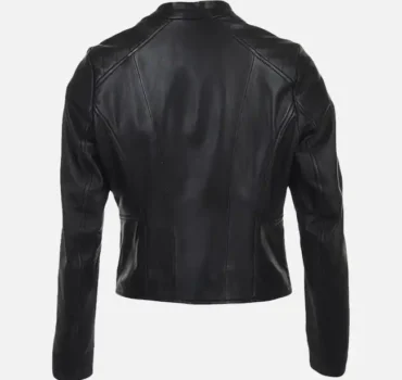 Women’s Simple Moto Black Leather Jacket – Minimalist Rider Style