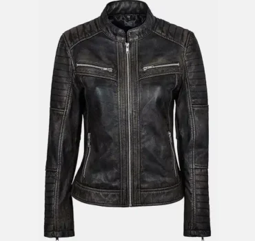 Channel classic biker vibes with the Women’s Vintage Biker Black Leather Jacket, crafted from genuine leather with a worn-in finish and timeless detailing for effortless cool.